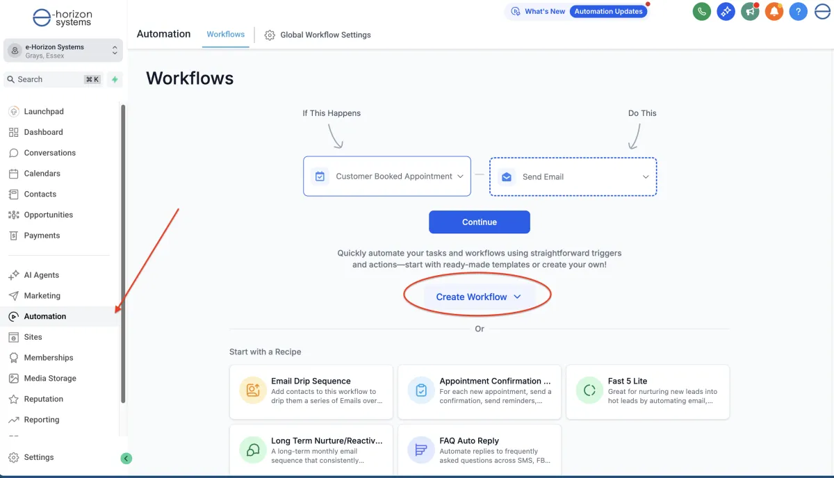 2. Go to the "Automations" section of your CRM and create a new "Workflow" from Scratch