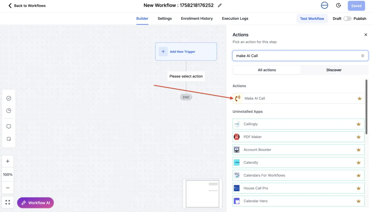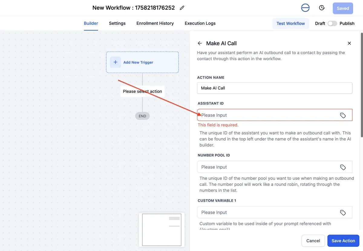 5. Any contact or trigger added to this workflow will initiate a call from the assistant.
